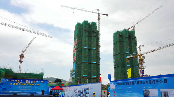 廈門市第二十一界職工技術比賽即“中四·融商杯”塔機操作工崗位技能競賽在廈門市海滄生態花園住宅項目部成功舉辦。此次大賽由廈門市建設局、廈門市安全生產監督管理局、廈門市人力資源和社會保障局、廈門市總工會主辦;中國建筑第四工程局有限公司、融商租賃有限公司協辦,廈門市41家單位的123名選手及領隊、裁判、嘉賓、現場工作人員等400余人參與此次活動。