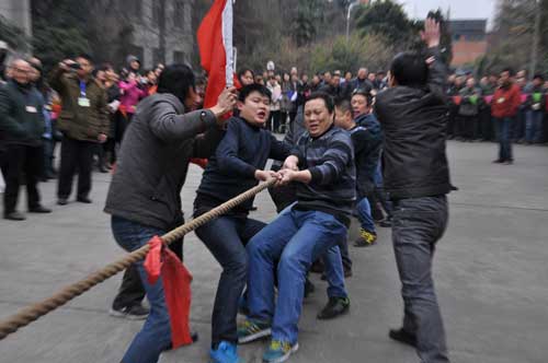 2015年1月,川建(集團(tuán))開展“迎春拔河比賽”活動(dòng),活動(dòng)主旨為豐富員工的文化生活,增強(qiáng)員工的體育鍛煉意識(shí),提高團(tuán)隊(duì)合作精神,進(jìn)一步增強(qiáng)企業(yè)凝聚力。