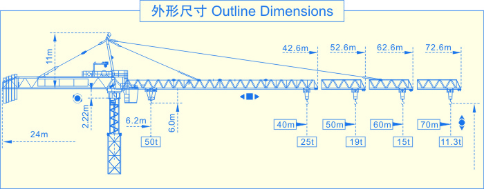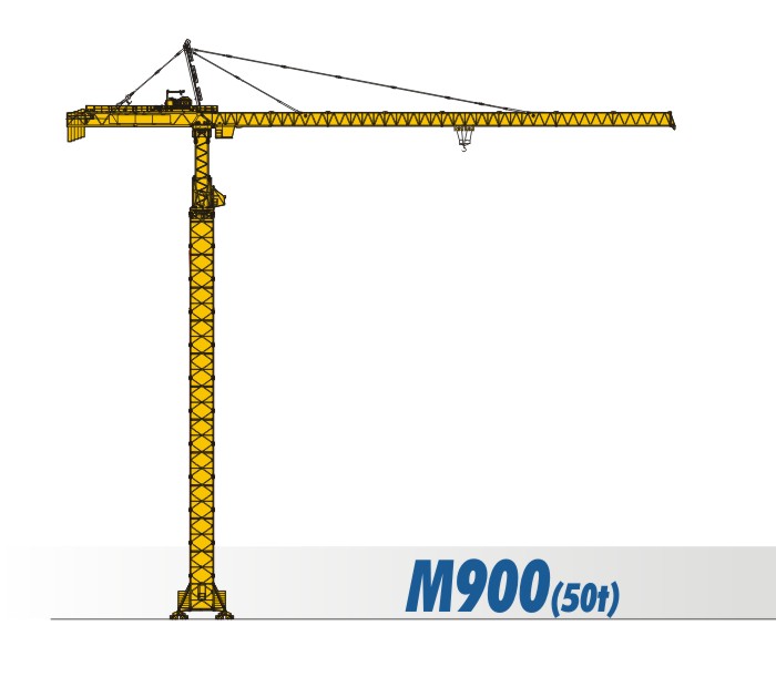 SCM-M900(50t)塔式起重機,是我公司吸收國外塔機技術,自行設計制造的大型上回轉自升式塔式起重機。該機型設計新穎,起升、回轉、變幅、行走、頂升等機構均采用國外技術,性能先進可靠。 該機具有軌道行走式、固定附著式,多種使用類型。變幅有單小車和雙小車兩種,單小車情況下最大起重量50t,端部吊重10t;雙小車情況下最大起重量50t,端部吊重11.3t。