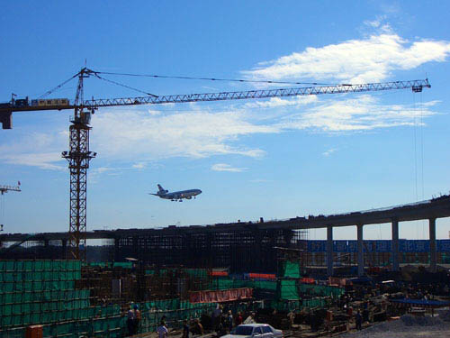 北京首都國際機場,距離市中心25公里,為4F級民用機場,是中國三大門戶復合樞紐之一、環渤海地區國際航空貨運樞紐群成員、世界超大型機場。北京首都國際機場建成于1958年。1980年1月1日,T1航站樓及停機坪、樓前停車場等配套工程建成并正式投入使用。1999年11月1日,T2航站樓正式投入使用,同時T1航站樓開始停用裝修。2004年9月20日,T1航站樓重新投入使用。2008年春,機場擴建工程(T3航站樓)完工。